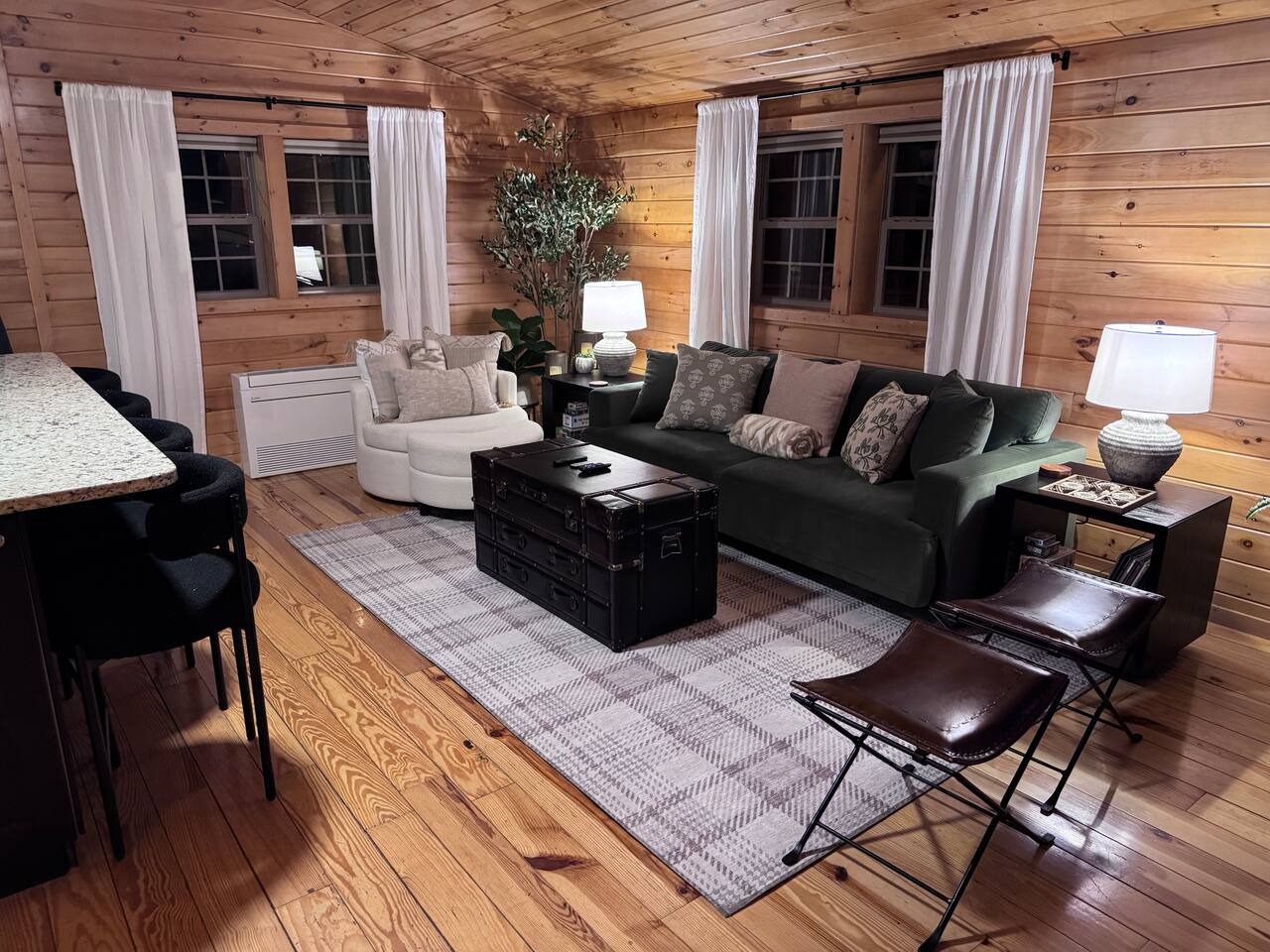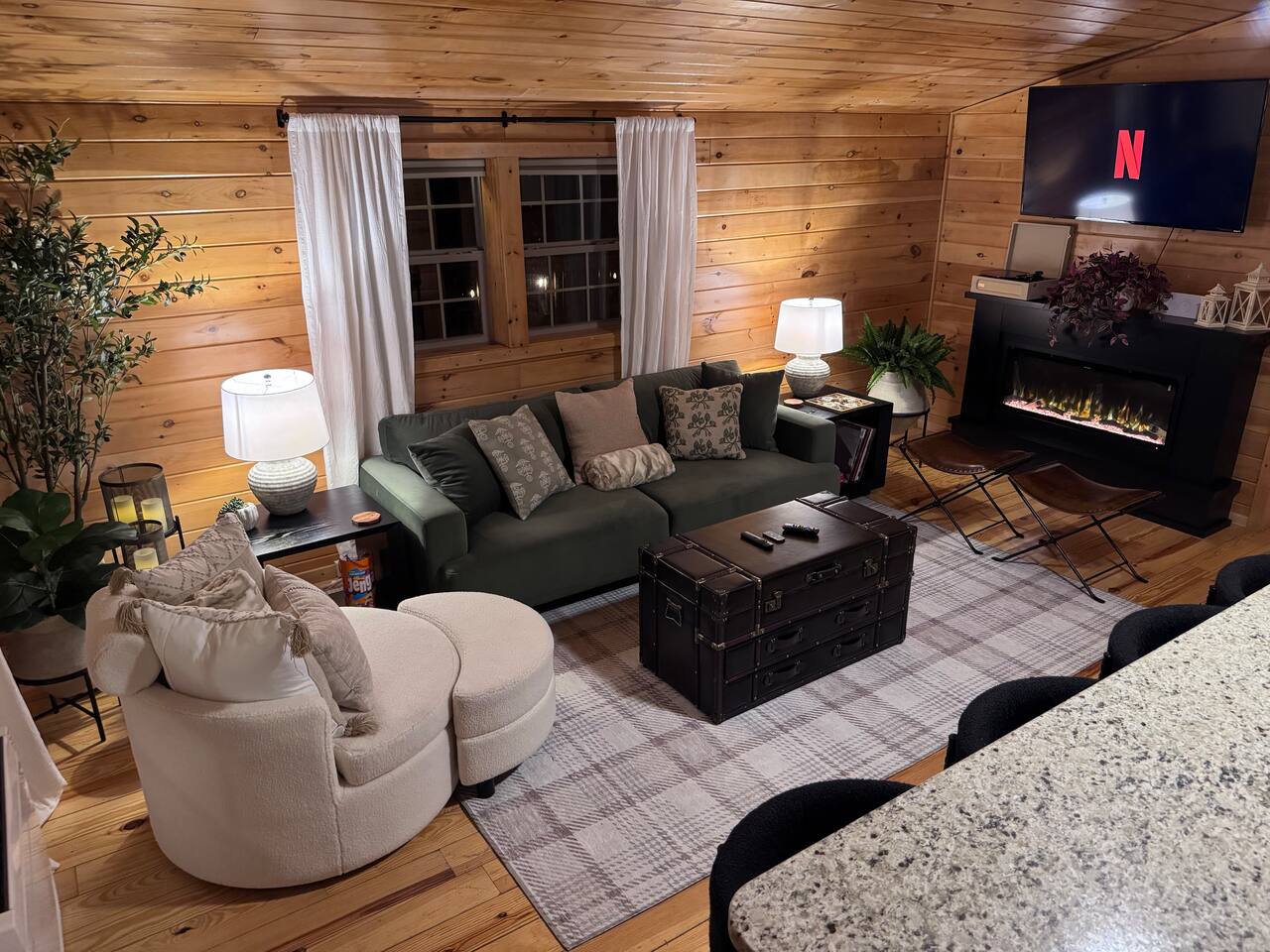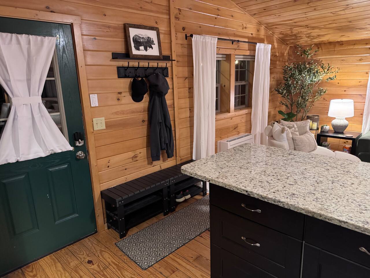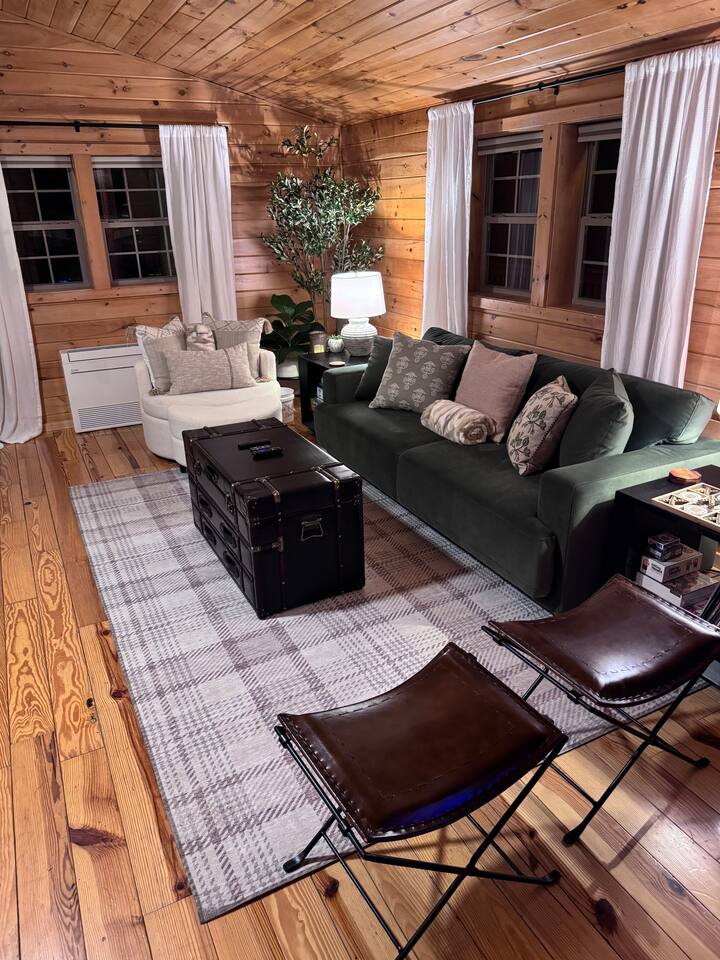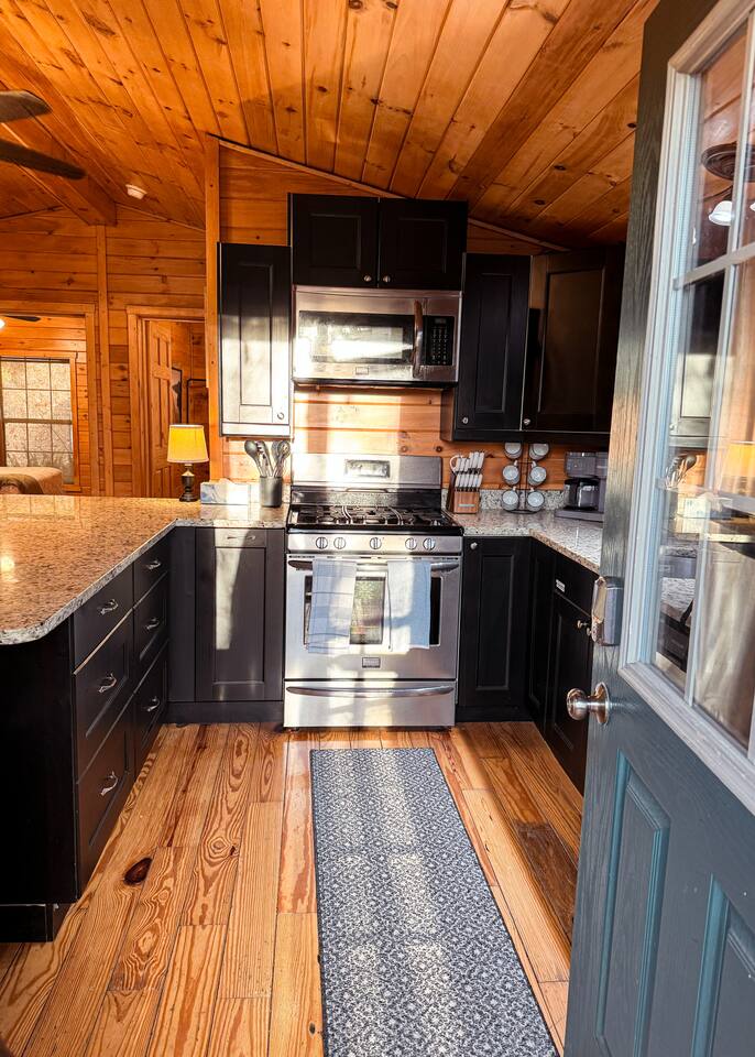 🌟🌟🌟 What You’ll Love 🌟🌟🌟 • A peaceful log cabin surrounded by trees and privacy • A relaxing hot tub on the deck with quiet views into the woods • A fire pit area with Adirondack chairs and warm overhead string lights • Warm wood interiors, vaulted ceilings, and classic cabin charm throughout • Starlink internet suitable for remote work, calls, and streaming • A well-equipped kitchen with a large granite island for cooking and gathering • Two comfortable queen bedrooms designed for restful nights • A secluded setting located near Shenandoah Valley’s best attractions 🌿 Outdoor Living The cabin sits at the top of a long gravel drive, wrapped in trees and nature on all sides. It feels peaceful from the moment you arrive. ✨ Hot Tub on the Deck: Enjoy a quiet soak surrounded by trees, fresh air, and calming forest views. ✨ Fire Pit with Adirondack Chairs: A dedicated outdoor space set into the woods with comfortable seating and soft string lights above. It is perfect for evening conversations, stargazing, or simply enjoying the warmth of the fire. ✨ Covered Front Porch: Wooded views, and a calm atmosphere for morning coffee or an afternoon break. ✨ Natural Wooded Setting: The property offers total privacy with no nearby neighbors. Leaves provide a green canopy in the warmer months and open up in fall and winter to reveal views through the forest. ✨ Easy Parking: A long gravel drive with plenty of room to park and turn around. Four wheel drive is recommended in the winter. 🏡 Indoor Living Step inside and feel the warmth of the cabin immediately. The wood interior, soft lighting, and open layout create a calm, inviting space that makes you want to settle in and stay awhile. The living area is cozy without feeling crowded. It is the kind of space where you can curl up on the sofa after a day outdoors, sip a glass of wine, watch a movie on the Roku TV, or flip through a book while the faux stove adds a gentle glow. Board games and puzzles are tucked into the coffee table for slow mornings or quiet nights in. The kitchen opens into the main living space and feels bright, clean, and easy to cook in. The large granite island naturally becomes the gathering spot for coffee, meals, planning your day, or getting a little work done with Starlink internet. It is simple, comfortable, and fully set up so you can cook when you want or keep things relaxed with takeout from town. Everything inside feels warm, intentional, and peaceful. It is the kind of cabin where time slows down and you genuinely feel at ease. 🛏️ Bedrooms Both bedrooms are peaceful, cozy spaces designed for real rest. The warm wood walls, soft bedding, and gentle lighting create a calm atmosphere that feels like a true mountain retreat. Each room has a comfortable queen bed and a ceiling fan, and both stay naturally quiet thanks to the surrounding trees. Whether you sleep in after a slow morning or drift off early after a day of exploring, the bedrooms are simple, soothing, and easy to relax in. 🚿 Bathroom The bathroom is bright, clean, and thoughtfully stocked so you can settle in without bringing much from home. You will find a standing shower, fresh towels, separate towels for the hot tub, and simple toiletries for your stay. It is not complicated or fussy. It is just easy, comfortable, and exactly what you need after a long hike or a peaceful soak in the hot tub. 🗺️ Nearby Attractions 📍 Shenandoah National Park & Skyline Drive – breathtaking overlooks, wildlife, and iconic trails 📍 Luray Caverns – underground wonders and family-friendly exhibits 📍 Local Wineries, Breweries & Cideries – sip and savor the best of Virginia 📍 Downtown Luray & Page County – shops, cafés, restaurants, and small-town charm ✨ Your Shenandoah Escape Awaits This cabin is made for slowing down, reconnecting, and savoring the simple things: quiet mornings on the porch, sunset views through the trees, starlit evenings by the fire, and cozy nights tucked away in the mountains. Whether you’re here to explore Shenandoah National Park, celebrate a special weekend, or simply breathe a little deeper away from everyday life, this retreat welcomes you with comfort, privacy, and peace. Book your mountain getaway. Your cabin in the woods is waiting.