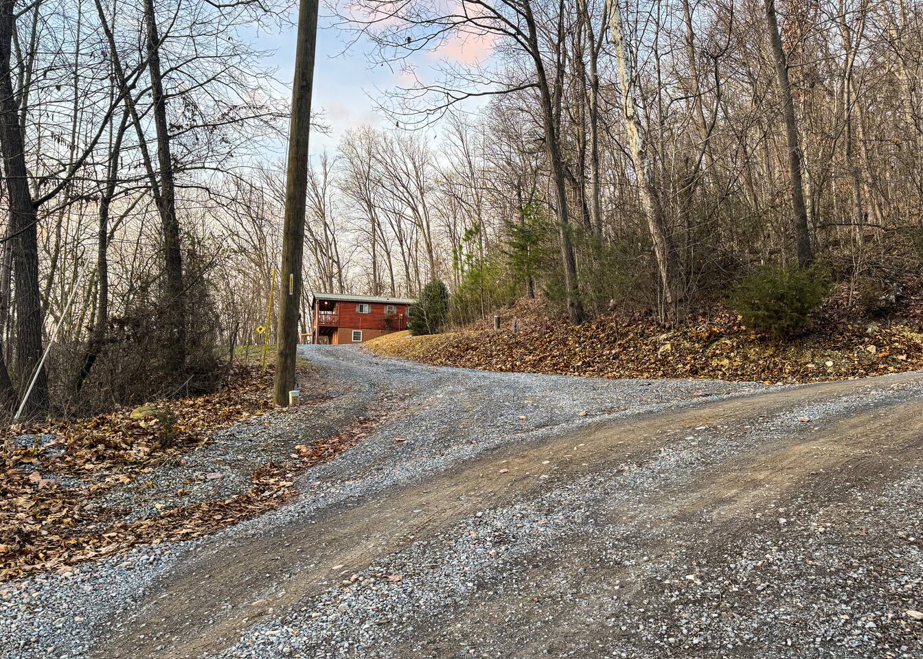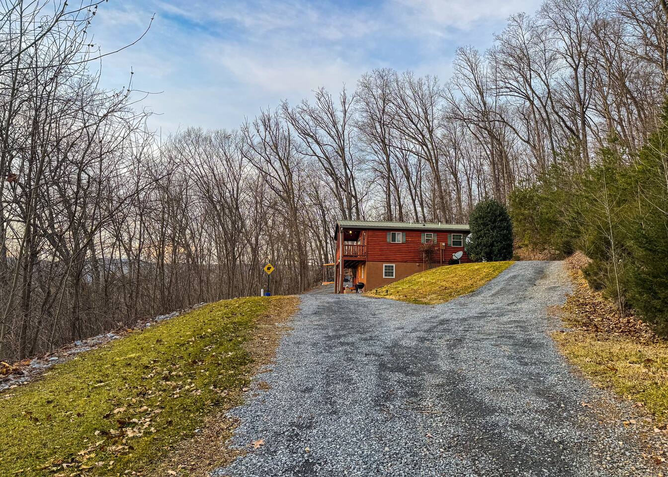 Reaching the cabin is simple and part of the charm of staying in this quiet mountain neighborhood. The roads throughout Shenandoah Gap are gravel and well maintained, and the drive in gives you a peaceful introduction to the wooded setting. The neighborhood is calm and rural, so you may want to take your time and enjoy the scenery as you make your way to the property. The posted speed limit is 15 miles per hour. Most guests find the drive easy throughout the year. During winter weather, snow and ice can make mountain roads more challenging, and a four wheel drive vehicle is required for safe access. Taking it slow and driving with care will make your arrival comfortable no matter the season. Once you reach the cabin, you will have plenty of parking space in the large gravel driveway. The area is quiet and spread out, so you will need a vehicle to get around to nearby attractions, including the national park, local wineries, Luray, and other popular spots in the Shenandoah Valley. The drive is peaceful, scenic, and a natural part of the mountain experience.